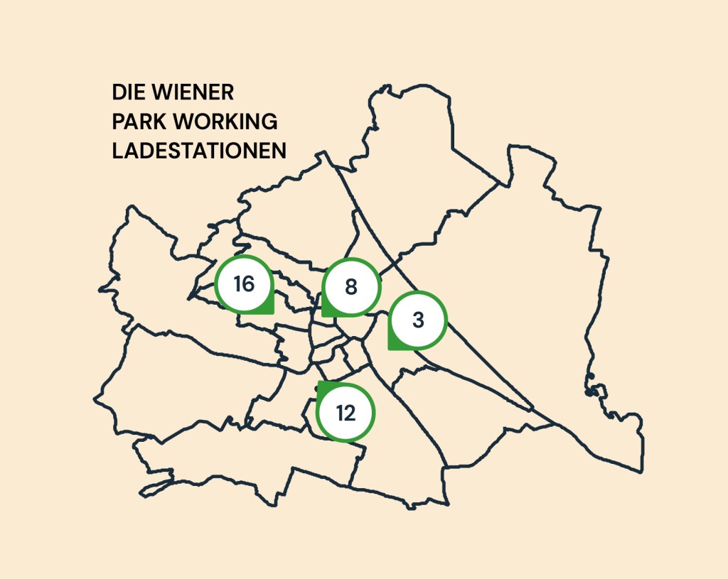 Zusammen mit der Stadt Wien wurde eine optimierte Lösung für den Einsatz in bestehenden Wiener Parks erarbeitet. Im öffentlichen Raum sind die Park Working Ladestationen einem besonders großen Nutzungsdruck ausgesetzt. Die Robustheit und zuverlässige Funktionsfähigkeit der Ladepunkte stehen daher im Vordergrund.